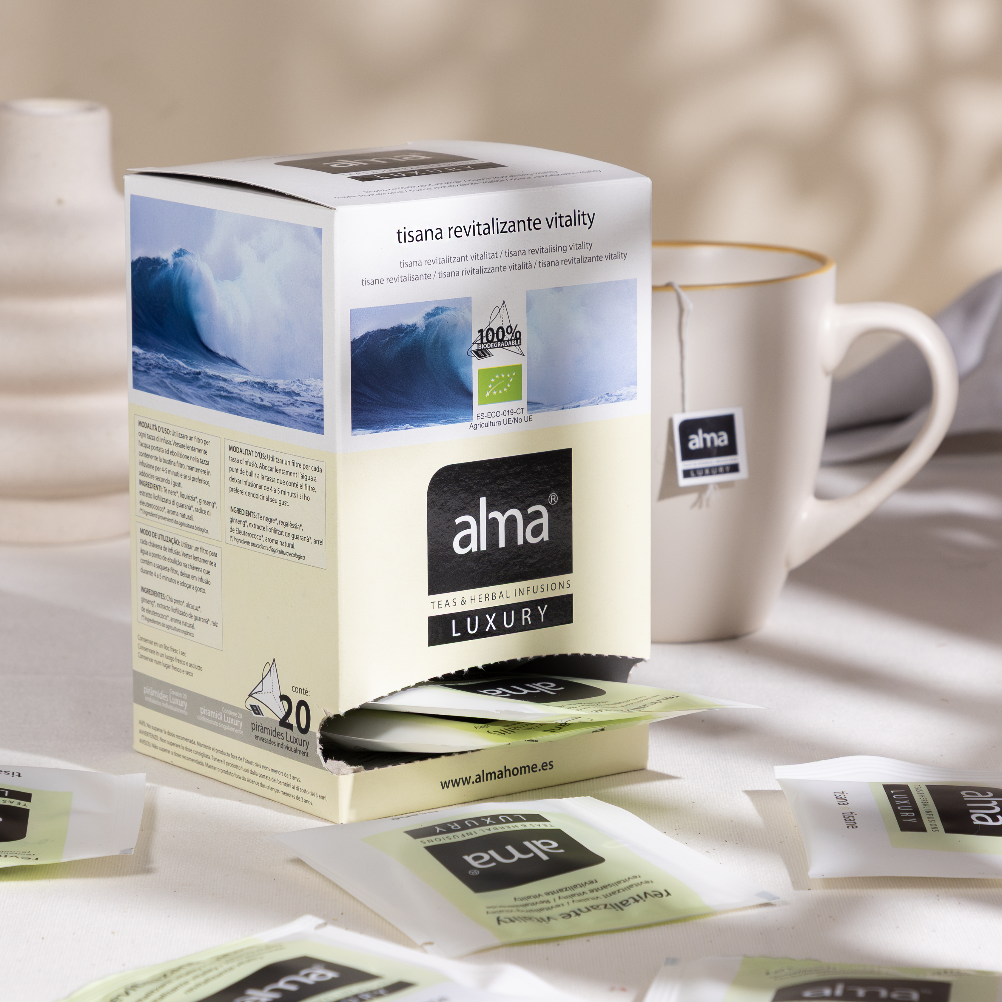 Introduce la pirámide en una taza con 200-250 ml de agua recién hervida (100ºC).