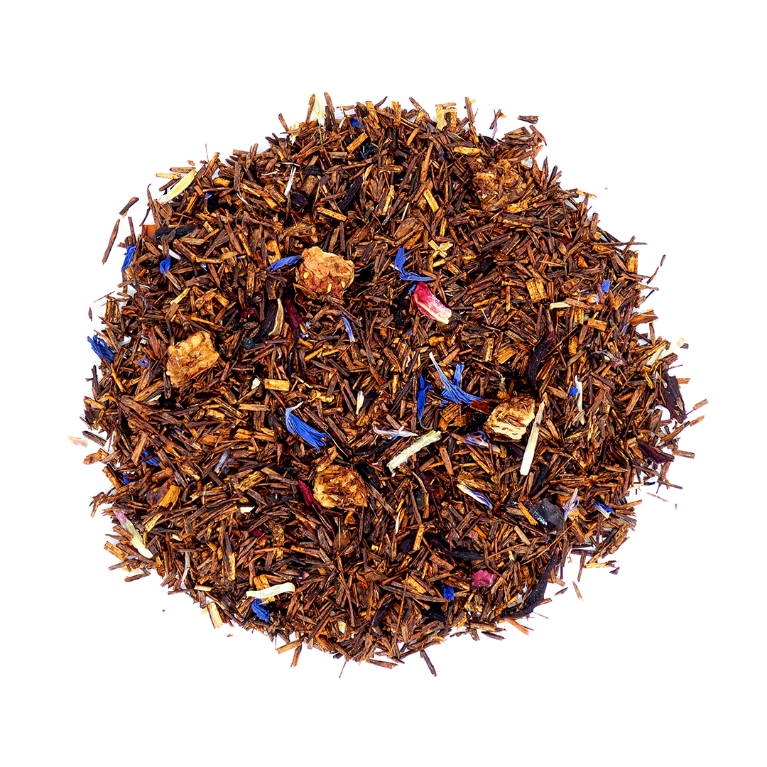 Un sabor con notas dulces y un final especiado. Un blend de rooibos, manzana, piel de naranja dulce y cúrcuma, con características antioxidantes e inmunoprotectoras